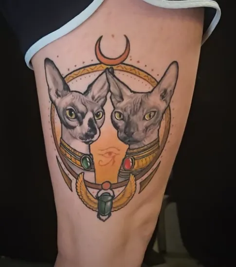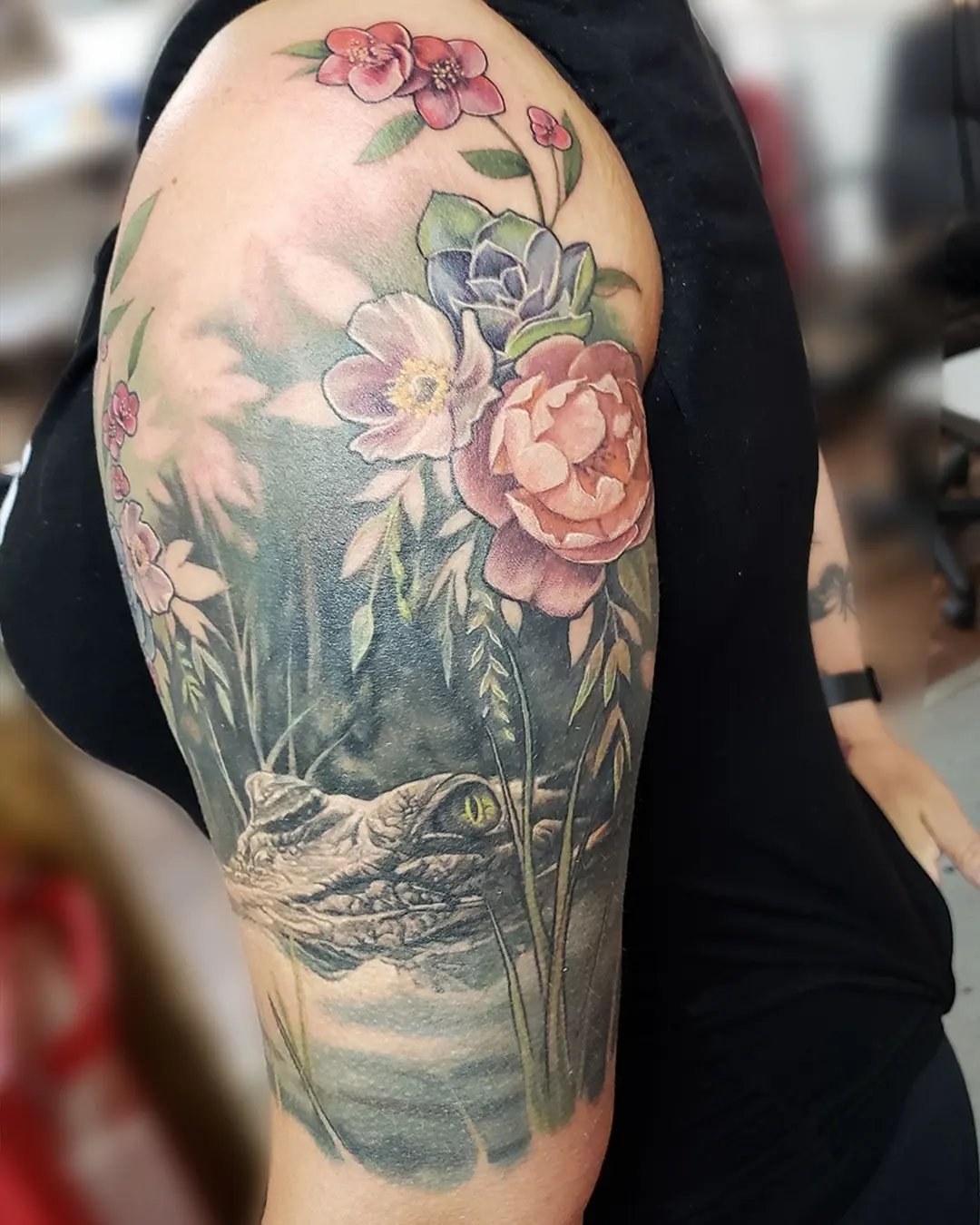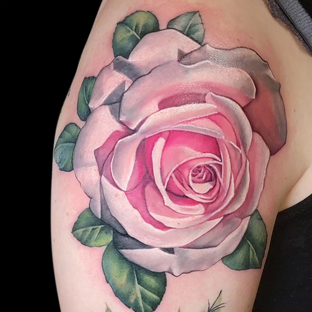 Katja’s favourite styles to tattoo are colour realism and neo-traditional, particularly with portraits and nature elements.